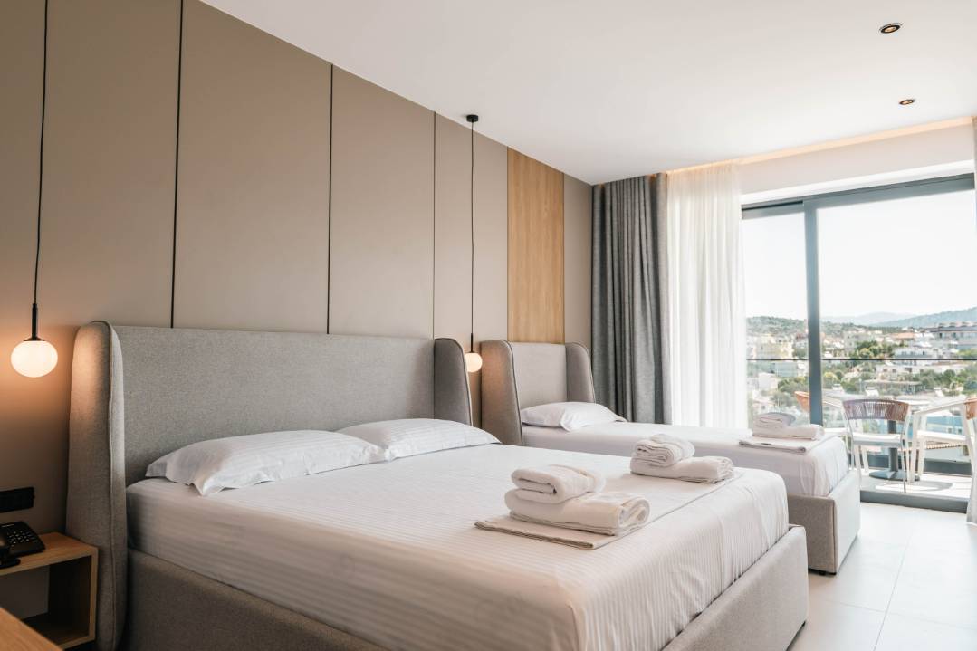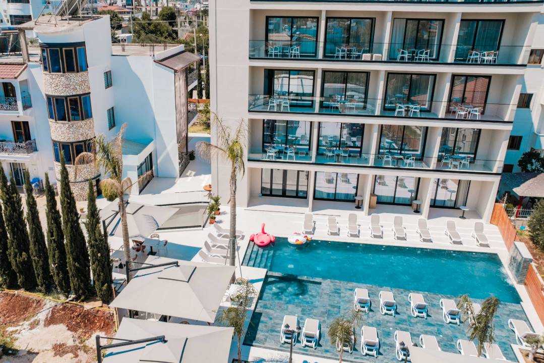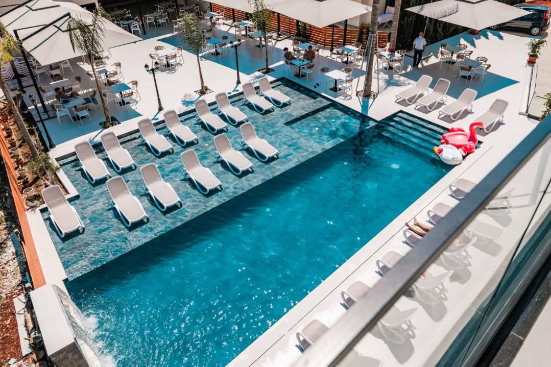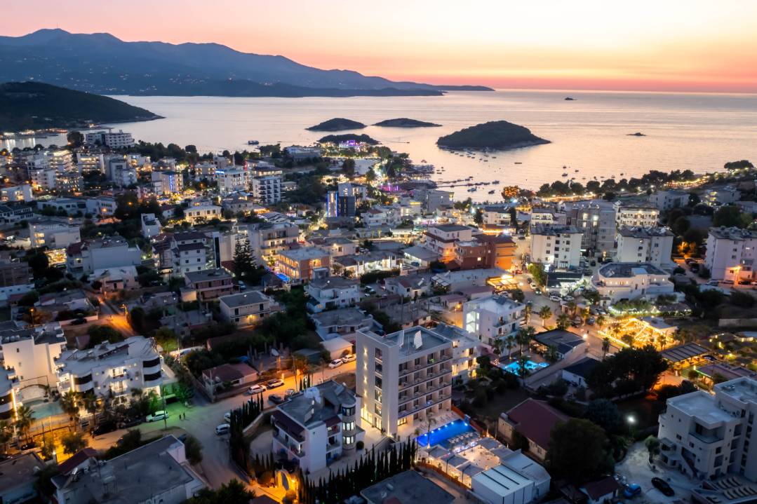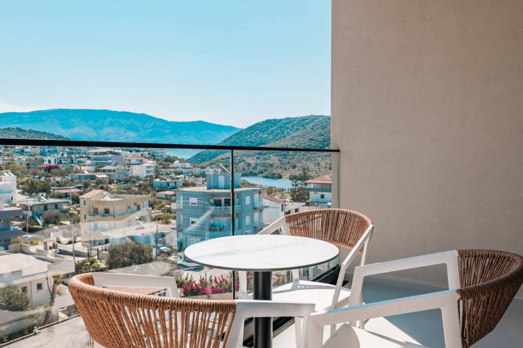 Central Park Premium Hotel in Ksamil offers 4-star comfort with air-conditioning, balconies, private bathrooms, and free toiletries. Each room includes a work desk, TV, and wardrobe.