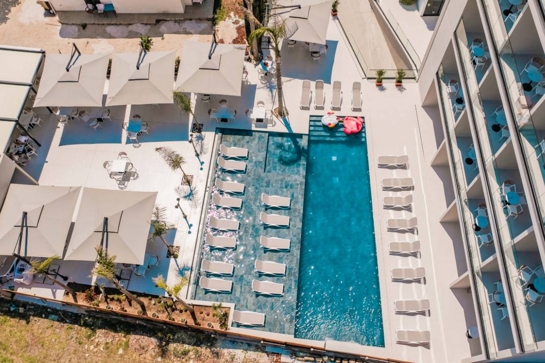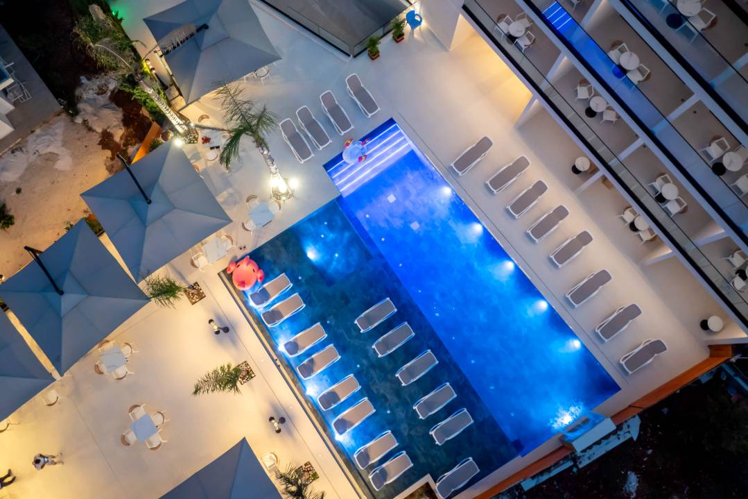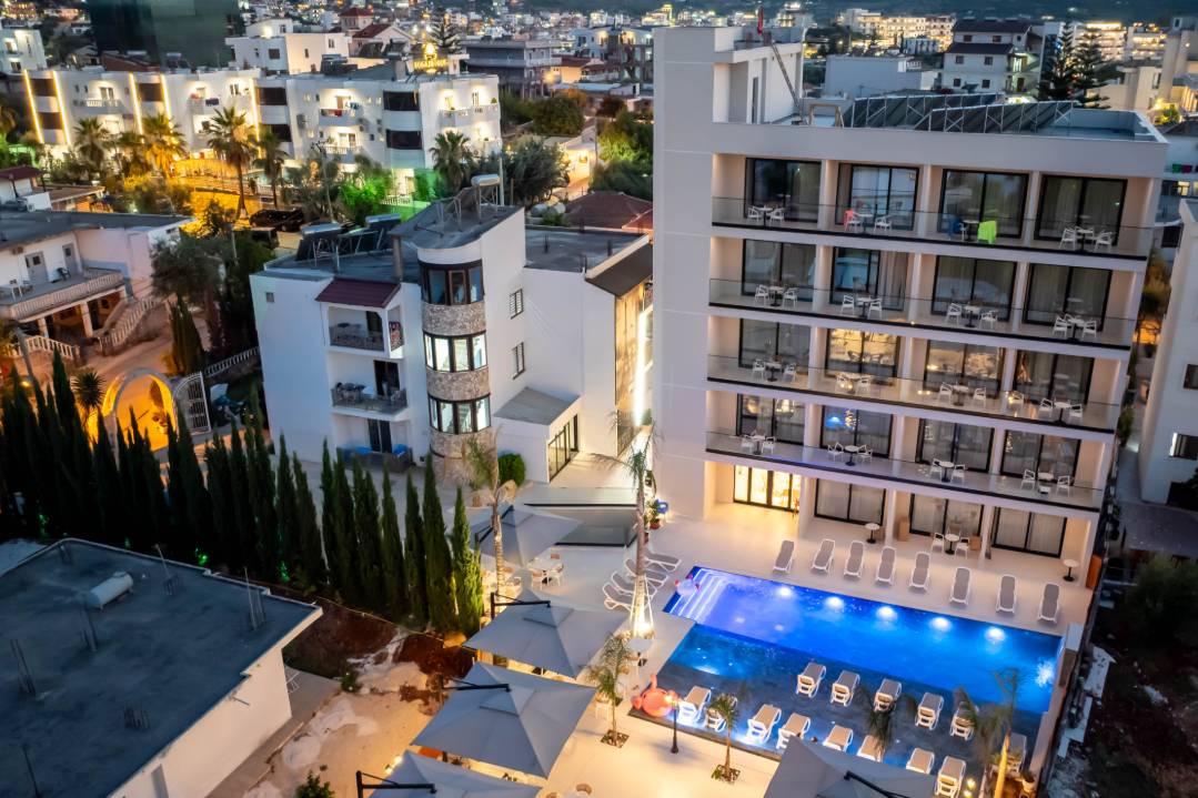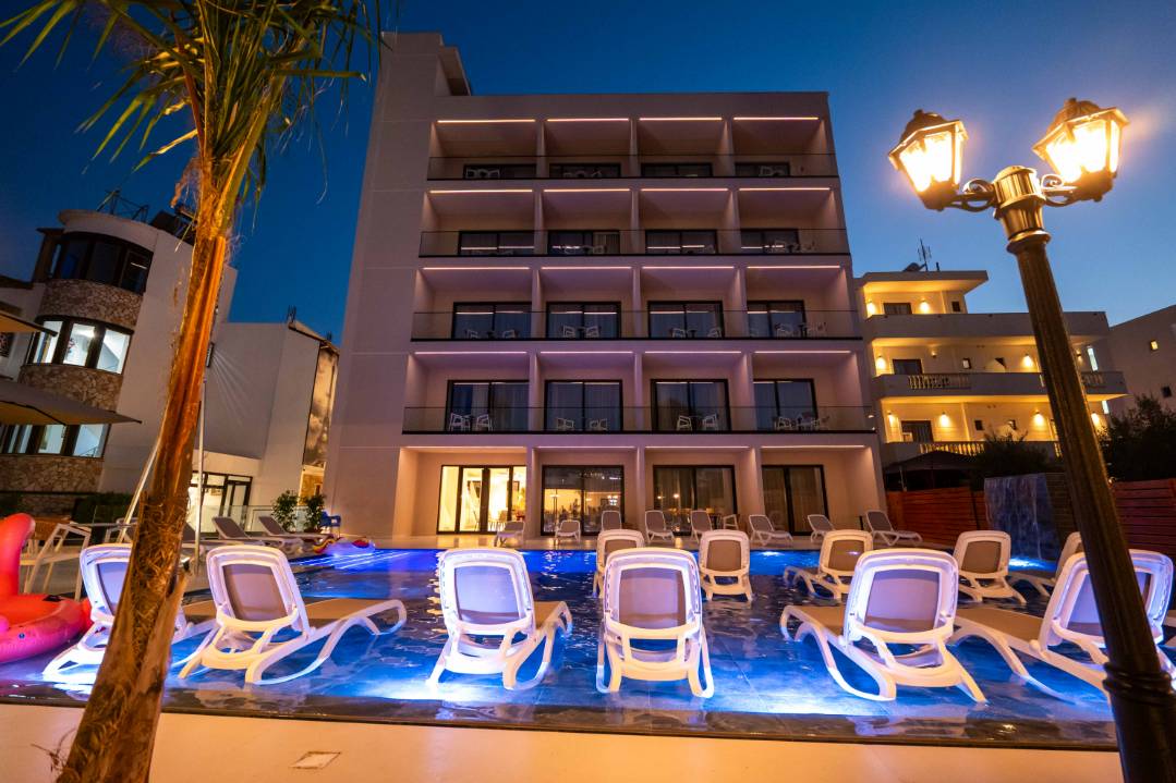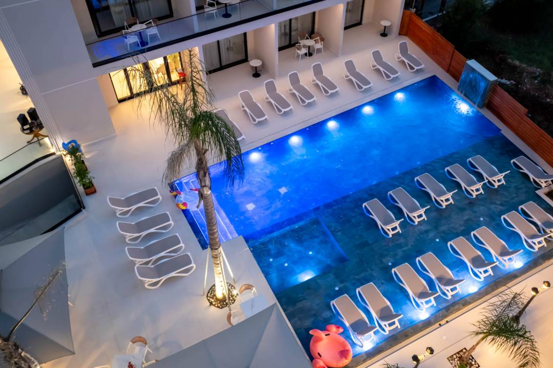 Central Park Premium Hotel in Ksamil offers 4-star comfort with air-conditioning, balconies, private bathrooms, and free toiletries. Each room includes a work desk, TV, and wardrobe.